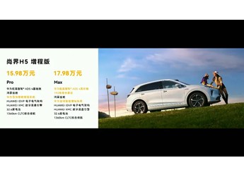 动力部分,尚界H5提供纯电动和增程式两种选择,搭配HUAWEI XMOTION数字底盘,驾乘体验十分出色。其中,增程版车型搭载1.5L增程专用发动机,最大功率72kW,电动机总功率150kW,总扭矩350N·m,匹配能量为32.6kWh的磷酸铁锂电池,CLTC纯电续航里程为235km;纯电版车型搭载后置单电机,根据配置不同,电动机总功率分别为150kW和180kW。匹配磷酸铁锂电池和三元锂电池,CLTC纯电续航里程共有525km、535km、640km和655km四个版本。