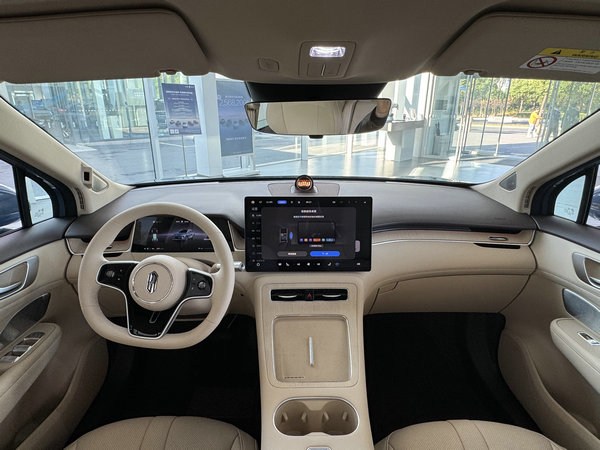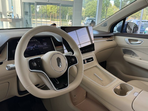 内饰方面,尚界H5采用了双层环抱式座舱设计,营造出对称秩序之美。用料上,仪表台大量使用软质材料包覆,手感十分细腻,再搭配门板温润舒适的麂皮绒材质,营造出相当不错的品质感。皮质多功能方向盘、10.25英寸全液晶仪表以及15.6英寸中控屏,均为全系标配