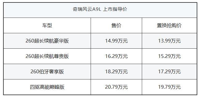 新车共推出4款车型,售价14.99万元起,置换抢购价13.99万元起。新车定位中大型轿车,采用插电混合动力。