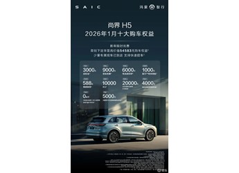 尚界H5推1月十大购车权益 限时现金优惠9000元2026/1/5 10:11:00