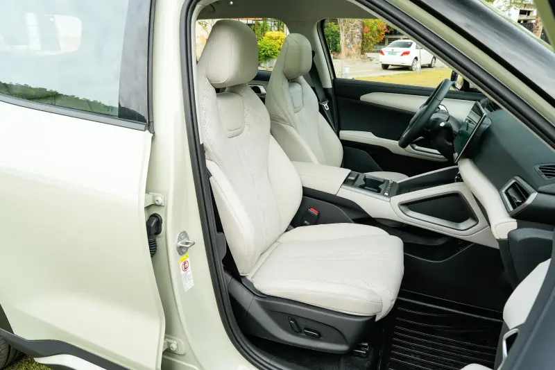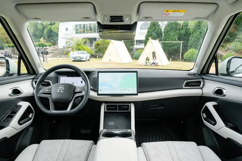 元UP与长安启源全新Q05都给前排提供了电动调节与加热通风、为座舱提供了尺寸可观的固定式全景天窗,并有车载氛围灯、二排独立出风口等等,加上智能车机支持手机APP远程控制,冬夏的车内温度都很不错。