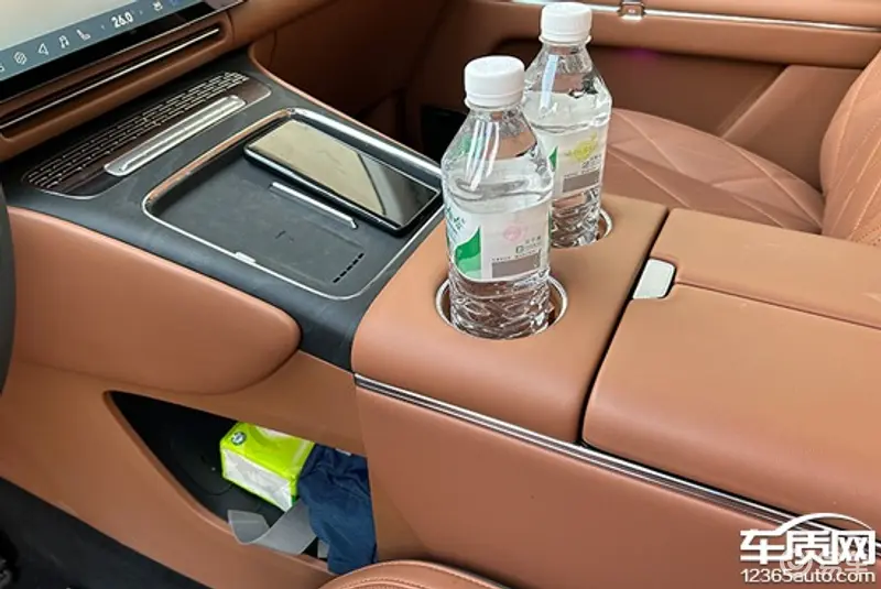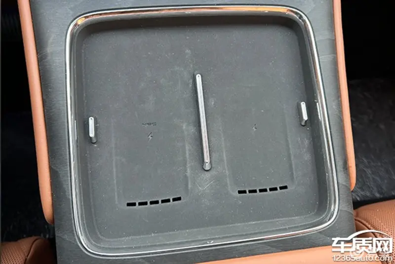 评测车前排杯架前方配备了2个手机无线充电板,位置设计合理,驾驶员拿放手机方便。充电功率为50W,不仅配备散热口,还支持语音和中控屏控制开启或关闭,实用性表现可圈可点。