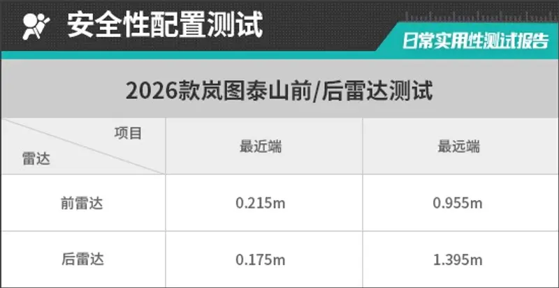 在雷达测试过程中,评测车的后雷达最远可在1.395m处感应到后方物体,雷达功率表现较好。从实测数据来看,后雷达最近端感应距离为0.175m,表现未达到同级别车型平均水平。