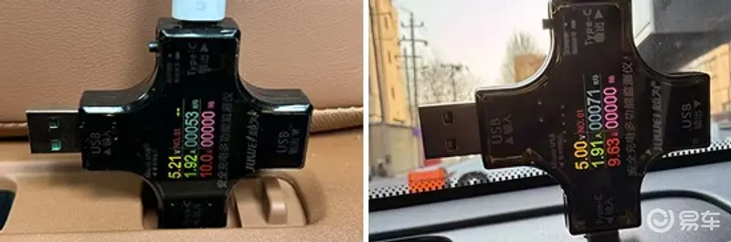 此外,我们对USB接口进行了测试。其中,前排USB Type-A接口充电功率为6.84W,电压为4.79V,电流为1.42A;USB Type-C接口的充电功率为9.62W,电压为5.02V,电流为1.92A。第二排USB Type-C接口充电功率为10W,电压为5.21V,电流为1.92A。第三排USB Type-C接口的充电功率为9.63W,电压为5V,电流为1.91A。
