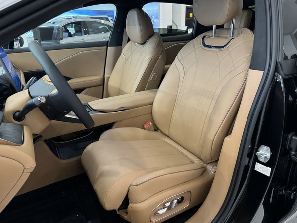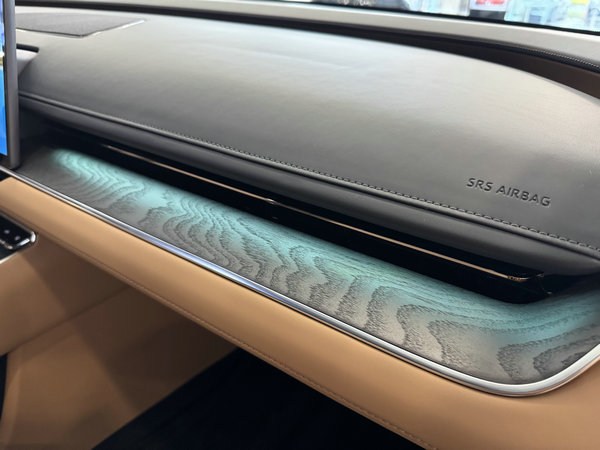 全系标配50年白栓木饰板、全包裹皮质座椅、麂皮质感顶棚,副驾零重力座椅遵循NASA人体工学,四座配备10点按摩,吸风式通风座椅避免气流直吹腰背。更难得的是,全车80余处隔音棉搭配双层夹胶玻璃,100km/h巡航时前排噪音仅69分贝。
