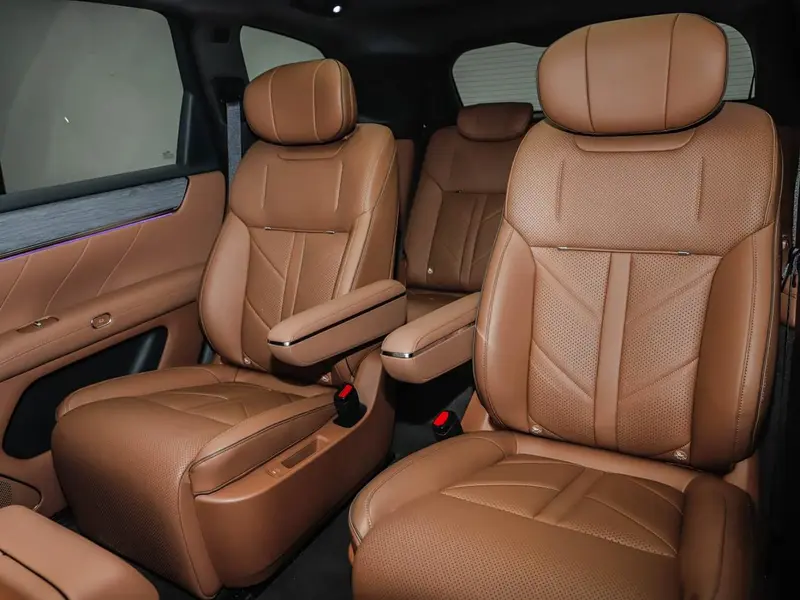 华境S基于天域架构L平台打造,车身长5235mm、宽1999mm、高1800mm,轴距达到3105mm,堪称名副其实的“532”全尺寸SUV。采用三排六座布局,得房率高达87.4%,拥有同级最宽的190mm二三排过道,真正做到了“真三排、真六座”,彻底告别第三排“小板凳”的尴尬。