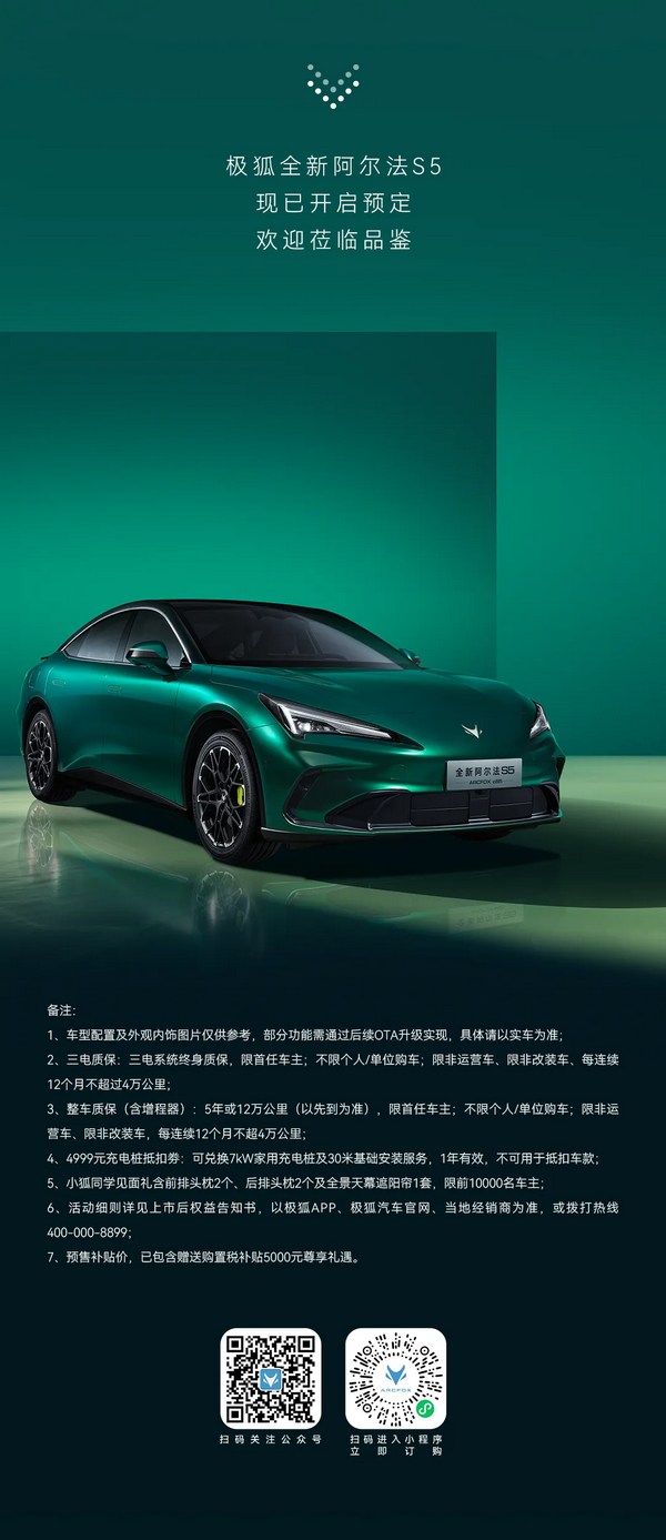常德极狐中心:全新阿尔法S5现已开启预售丨预售补贴价11.28万元起