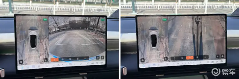 评测车配备360度全景影像以及车侧盲区影像,并配有可随动转向的倒车辅助线,能够减轻泊车时的压力。经实测,整体画质清晰且无畸变。