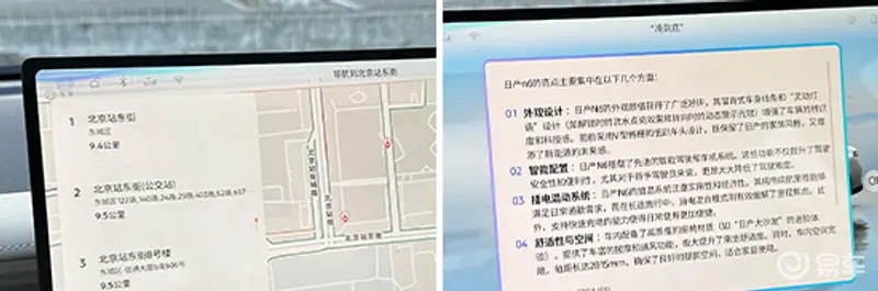 经过实测,系统可以正确执行“打开副驾车窗”指令,且反应速度较快,但无法理解和执行指着副驾车窗说“打开这个”指令。对于“我有点饿了”和“我有点不太舒服”指令,系统会先进行关心,然后询问是否需要查询附近餐厅或医院。对于“导航到北京站东街”这样容易混淆的复杂指令,系统能够排除干扰正确理解;此外,对于“导航到附近大众点评得分4.5分以上的川菜馆”指令,系统也能给出正确的回复。智能交互方面,系统对于指令7和指令8都能给予正确反馈。此外,评测车还支持双区域语音唤醒识别、语音连续识别以及可见即可说,智能交互表现在同级合资品牌中处于领先水平。