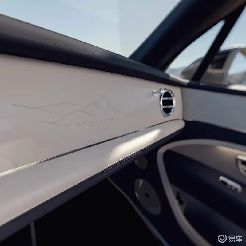 云境版车型的专属设计图案,以蚀刻工艺呈现于仪表板,并刻有“Roque Bentayga”山峰的精确经纬度。同款图案还呈现于座椅肩部区域、车门面板以及迎宾灯投影设计之中。照明式迎宾踏板与带有云境版专属标识的翼子板通风口,共同成就车型的独特风格。