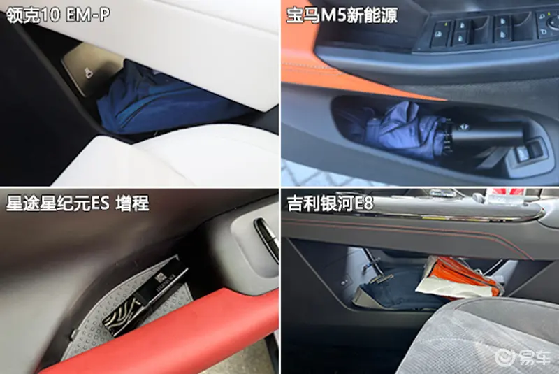 车内储物空间方面,四款车型整体表现基本令人满意,上述固定物品除墨镜外,其余物品都能找到合适的位置进行摆放。