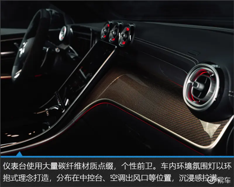 新车内饰运动感十足,三辐式方向盘两侧以翻毛皮材质包裹,有效避免激烈驾驶时因摩擦力不足产生打滑。大量碳纤维饰板、皮质材料的运用,也让内部视觉、触觉体验上升至全新高度。此外,座椅填充柔软,具备丰富的舒适功能,日常使用更惬意。