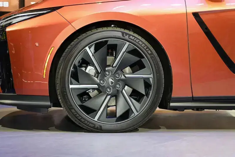 来到侧面,新车车身下半部分设计了一条黑色折线,犹如电流一般。另外能够看到,新车还采用了隐藏式的门把手,并可以选装低风阻轮毂。新车的车身尺寸与上一代车型相比,车身长度增加165mm,轴距加长80mm。