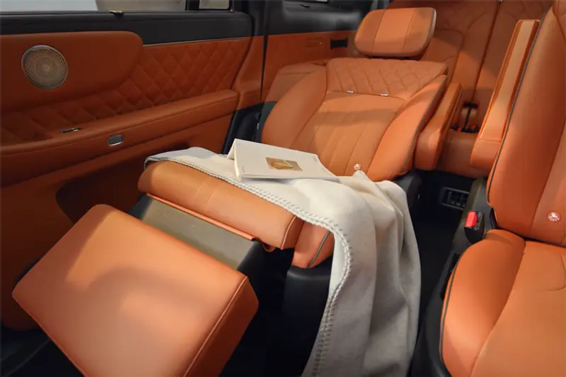 对于大六座SUV来说,第二排乘员的出行体验永远是产品核心价值。打开车门就能见到类似豪华商务车的两个NAPPA头层皮独立座椅,内置22个按摩点,支持一键躺平与腿托四向调节,配合4处手机无线充电(50W)、6窗遮阳帘、21.4英寸4K车顶翻折屏、头枕音响(共31个扬声器),绝对的视听体验拉满。