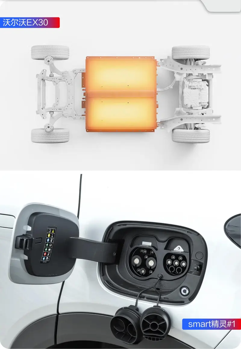 而续航能力,对于新能源车也是较为重要的参考指标,以主销车款来看,沃尔沃EX30的相关工况续航数据最高可达590km,而smart精灵#1则为560km,对比之下,前者的优势会相对大一些。补能方面,两车都使用49kWh和66kWh的电池,10%-80%SOC快充,沃尔沃EX30最快仅需26分钟。smart精灵#1略慢一点,为30分钟。