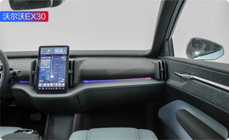 此外,沃尔沃EX30的中控台设计遵循极简美学,线条利落流畅,一块大尺寸中控屏悬浮其中,奠定了强烈的科技基调。细节之处尤为动人:亚麻丹宁饰板呈现出如梵高《星空》般富有艺术感的纹理,搭配冰川式样空调出风口,尽显匠心巧思。得益于内饰大面积采用环保材质,不仅有效杜绝了车内异味,更从源头践行了可持续发展理念,淋漓尽致地展现了品牌高雅脱俗的格调与社会责任感。