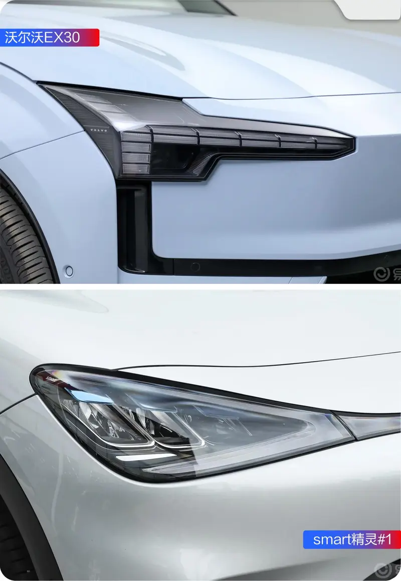 smart精灵#1前大灯的设计与沃尔沃EX30形成了鲜明的对比,泪滴式的灯组造型与车辆的设计更加贴切,使其呈现童趣与亲和力,但这样设计却不太适用于家庭用车需求。